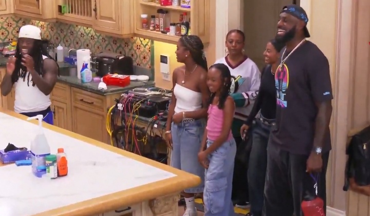 今日湖人球星詹姆斯做客美国网红、自媒体创作者(凯-塞纳特)Kai Cenat的直播间。