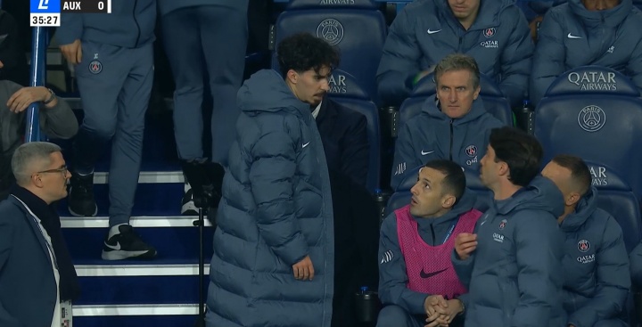 维蒂尼亚下场后还在与指导教练员组沟通沟通 。