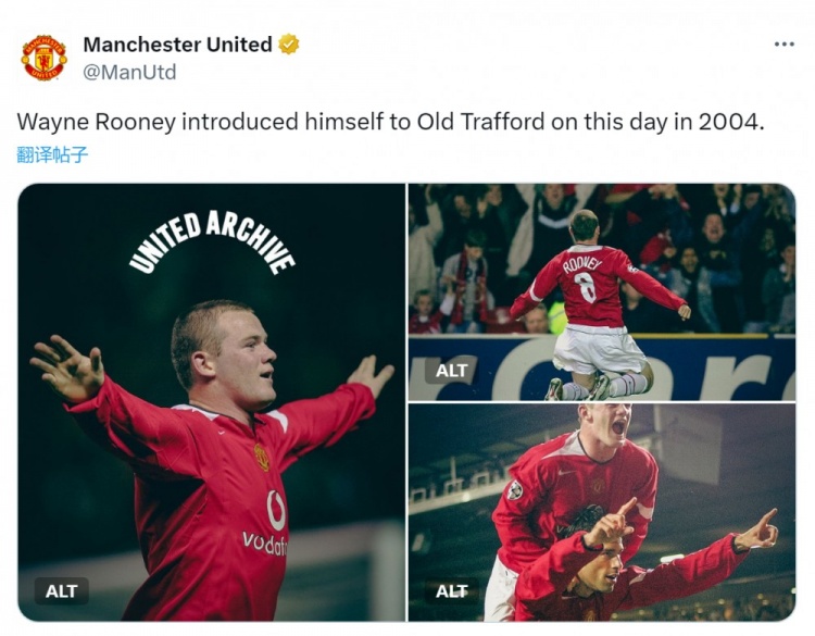 9月28日讯 曼联官方更新社媒动态,回顾2004年的今天鲁尼上演曼联首秀。
