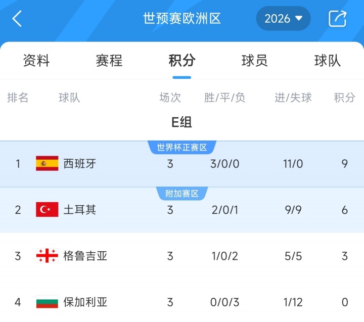 在世预赛欧洲区E组积分榜意甲足球新闻上,土耳其2胜1负积6分排名小组第2,追赶 榜首西班牙3分;由于11个净胜球的巨大差距,即使土耳其在与西班牙的直接对话中获胜,也很难小组头名直通世界杯赛 ,争夺附加赛资格对土耳其来说是更有可能的选择。