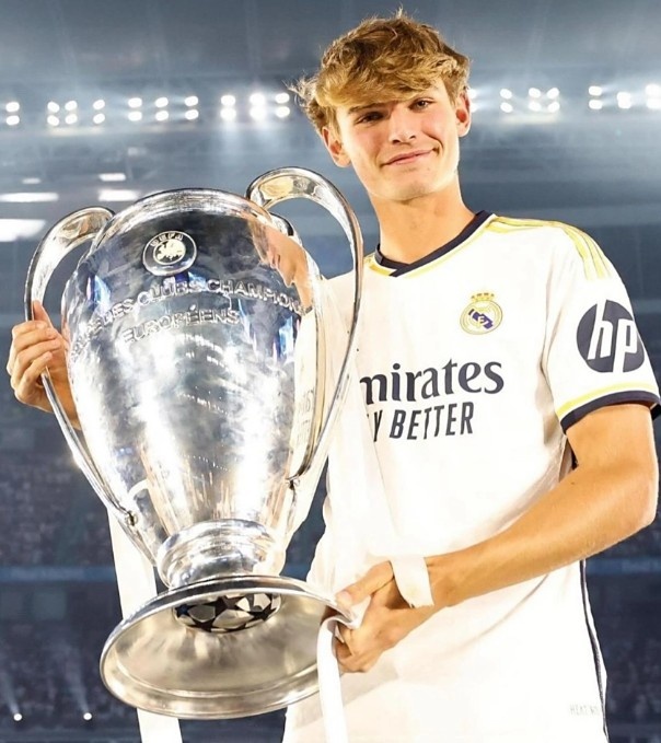 当然,这可不是他在科莫的“昙花一现”了,不然笔者也不会大费周章的去分析他。成年之后就加入了皇马正规青训体系的他,其实早在18、9岁就身披白衣出战了(国王杯)。2023/24赛季也是在欧冠赛事 中完成了个人首球的成就,被诸多媒体关注。