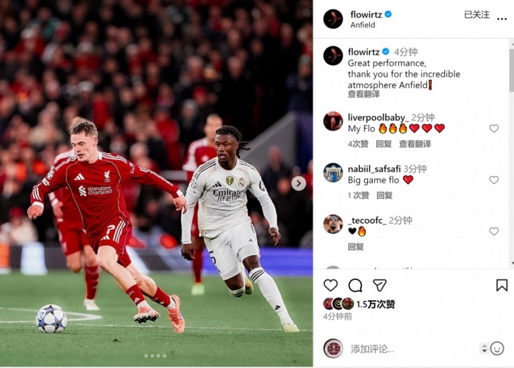 此役维尔茨为利物浦杆位出战,送出5记关键传送球 ,英超免费高清直播赛后他在社交媒体上晒出赛事 照片,并写道:“出色 的表现,感谢你们在安菲尔德营造的非凡氛围!”
