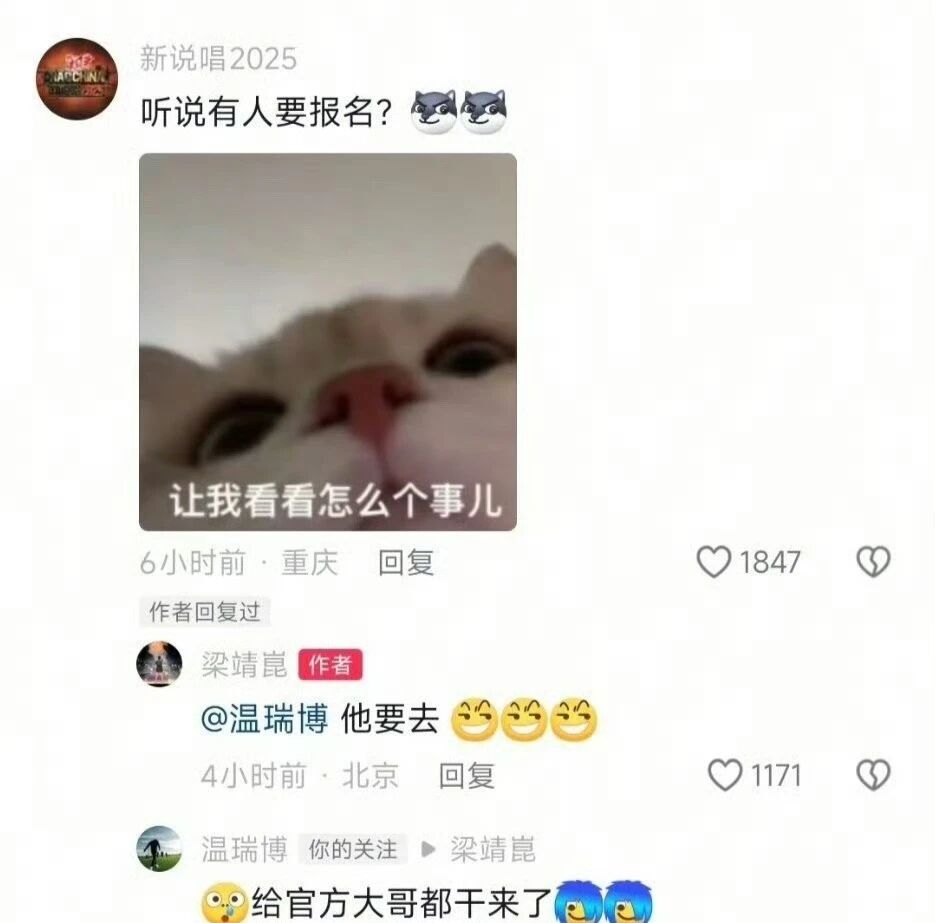 对此,梁靖崑艾特温瑞博回复:他要去!