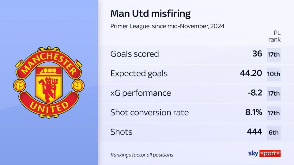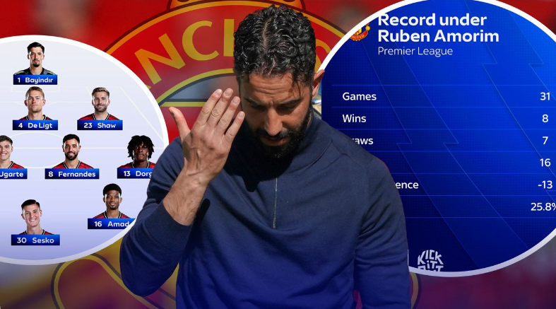 自阿莫林执教以来,曼联在31场职业联赛 里只拿到了31分,同期在英超球队(包括升降级球队)里排名垫底,16次失败 恰好是取胜场次的两倍。
