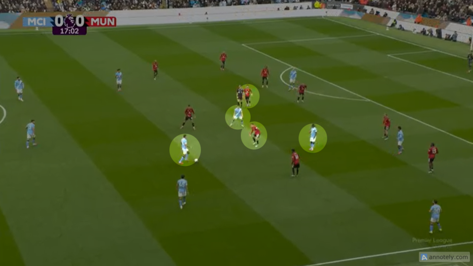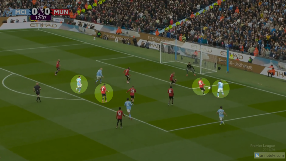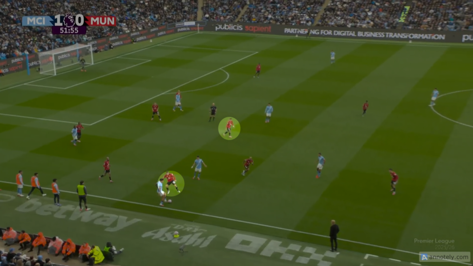 在对曼城一战,费尔南德斯防卫 错误 ,导致多库突入危险区域 之后为福登送出助功 。