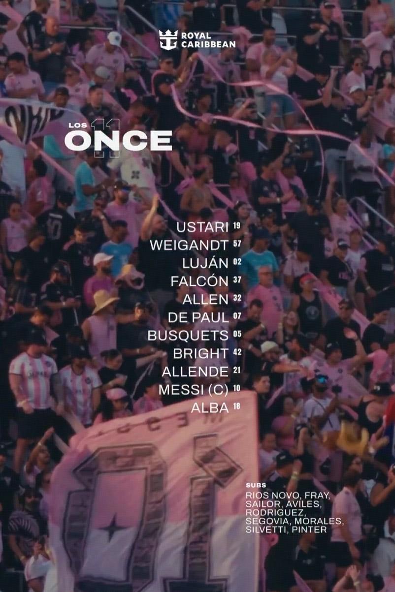 迈阿密国际杆位:2-贡萨洛-卢汉、5-布斯克茨、7-德保罗、10-梅西、18-、19-乌斯塔里、21-阿连德、32-诺亚-艾伦、37-法尔孔、42-扬尼克-布赖特、57-韦甘特