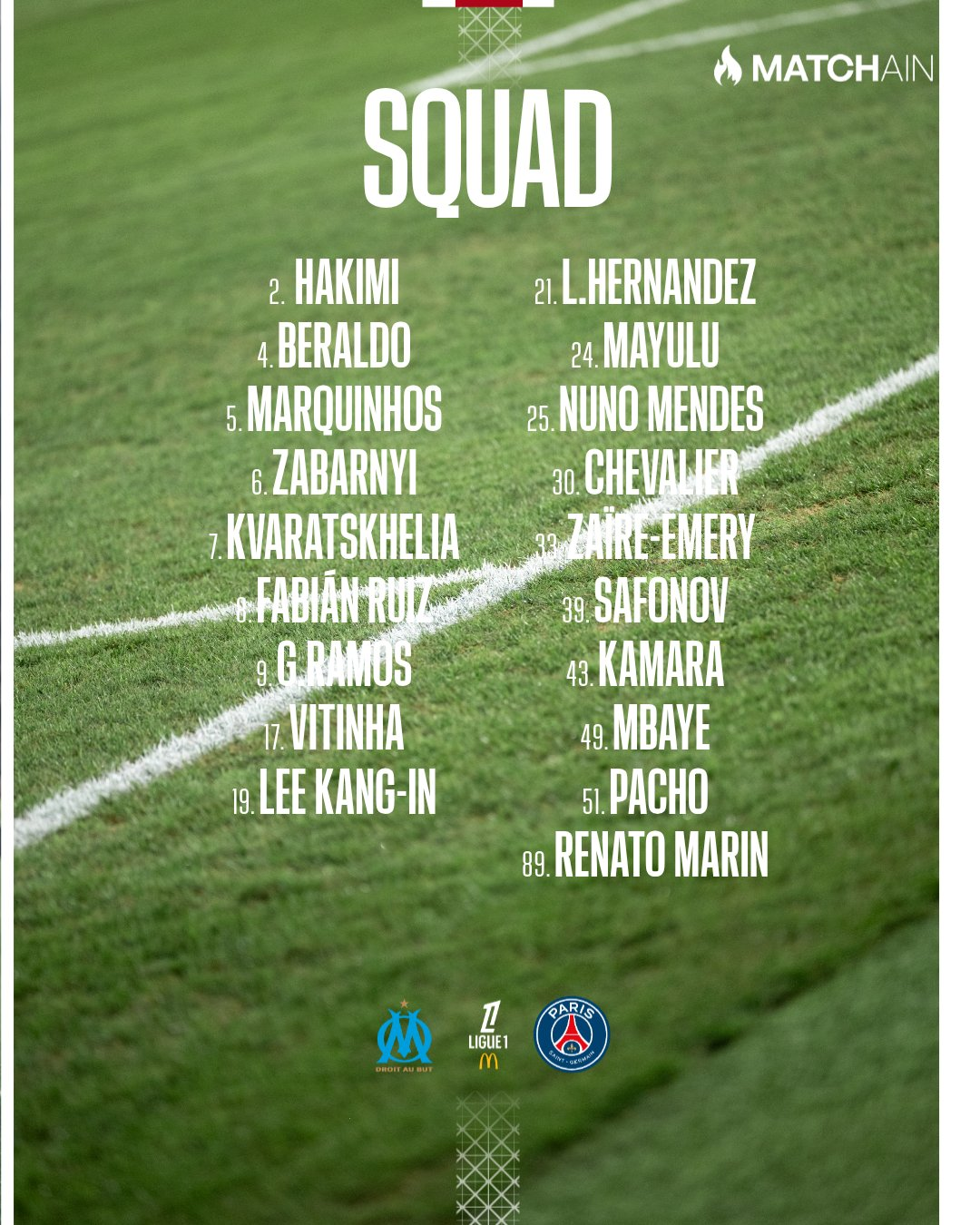 雷速体育9月22日讯 巴黎圣日耳曼官方再次公布了本轮法甲对阵马赛的阵形 名单2024男足首耳情况分析预测,克瓦拉茨赫利亚领衔锋线,阿什拉夫在列。
