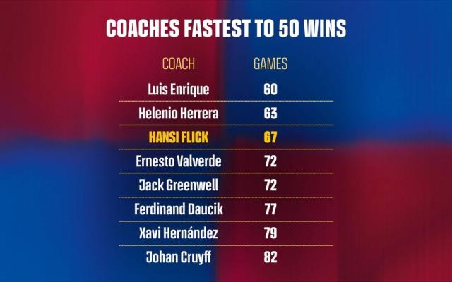 巴萨3比1反转 奥维耶多,3连胜追赶 皇马2分,本周末马德里德比可以坐山观虎斗。本场弗利克迎来了执教巴萨的第50场获胜 ,这位德国指导教练员仅仅用了一年多时间、67场赛事 便达到50胜的里程碑,成为俱乐部历史上第三快解锁这一成就的主帅,只有路易斯·恩里克(60场)和埃莱尼奥·埃雷拉(63场)比他更快。巧合的是,女足一线队主指导教练员佩雷·罗梅乌上周末在塞维利亚取胜后也达到了执教50胜,这两位在2024年夏天上任的指导教练员至今在胜场数上保持同步。