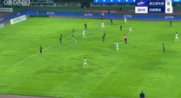 第39分钟,莱切特传中,周定洋凌空抽射破门,蓉城3比0领跑 浙江队。