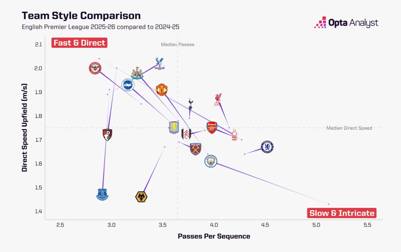 其中,一个愈发明显的趋势是——英超球队的打法正朝着更加直接的方向进步 。当然,这种趋势在大多数球队身上体现得较为显著……