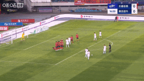 第15分钟,青岛海牛前场定位球机会,林创益主罚直接兜射远角积分 ,亚泰少打一人且0-1追赶 ↓