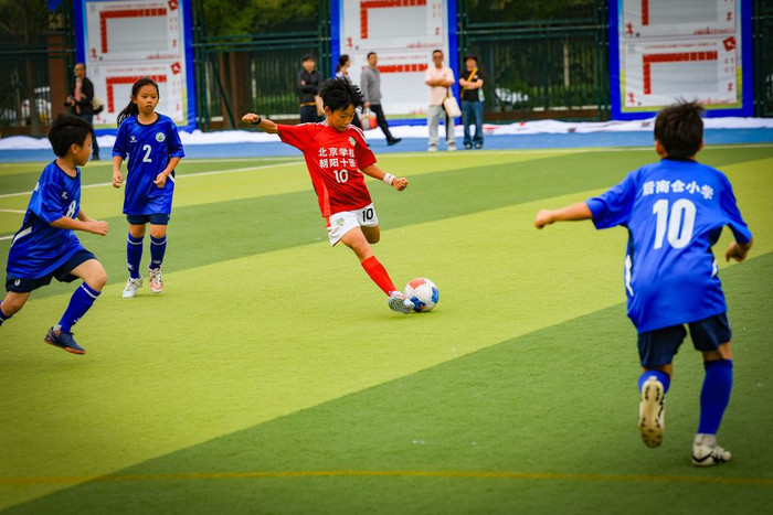 2025年9月27日,北京市“校园古代足球 主题月”活动在北京学校启动。小队员射球 瞬间。
