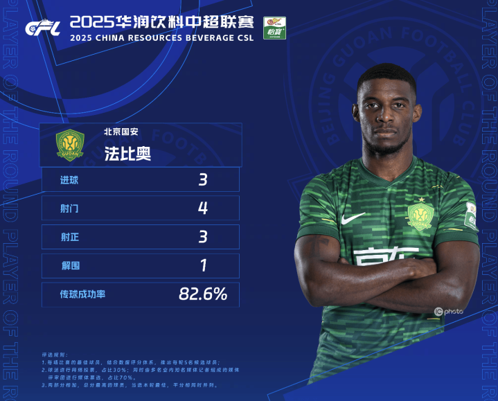 在第26轮的官方最佳球员评选中,法比奥在媒体评审环节获得了13张第一顺位选票和4张第二顺位选票,以62分排名第一;在球迷投票环节,法比奥的总票数排名第三足球新闻蔡一睿最新消息视频,获得18分,最终他以总分80分当选为第26轮最佳球员。