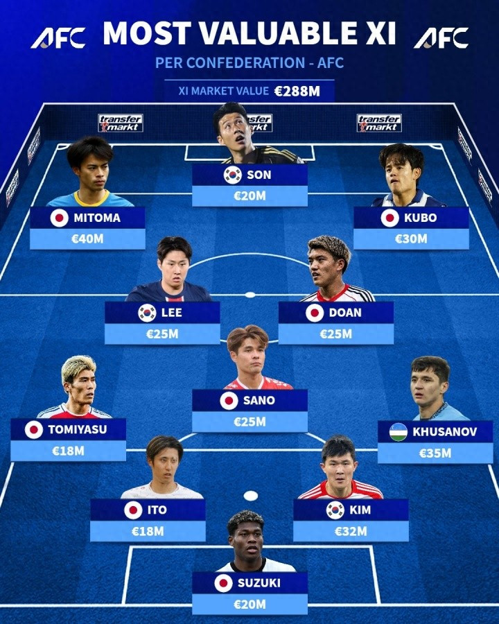 比较权威的身价统计网站《德国转会市场》不久前评选了亚洲身价最高的杆位阵形 山东壹睿安装工程有限公司,11名球员的身价相加,达到了2.88亿欧元,其中亚洲排名第一的日本队独占7席,成为了最大的赢家!