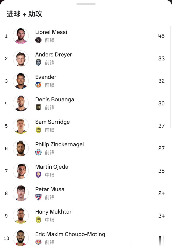 此外,梅西还创造了一个新记录 ,成为美职联历史上最快打进50球的球员,英超直播只用了53场赛事 ,打破了约瑟夫·马丁内斯和伊布共同保持的54场50球的记录(其中伊布两个赛季10个十二码球,梅西只有2个十二码球)
