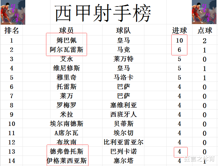 射手榜方面萨卡破门,姆巴佩和哈兰德现在是隔空较起了劲,哈兰德8轮打入11球,姆巴佩今天打入致胜球 球后9轮打入10球,也上了双。西甲第2和英超第2都一样,阿尔瓦雷斯打入6球。维尼修斯,艾永和穆里奇5球并列第3。德弗鲁托斯今天连进两球后,追上莱万,托雷斯等人4球刚好挤入前十。